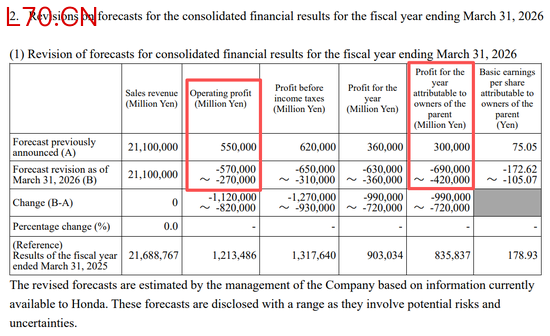 刚刚,本田汽车承认,其2025财年(2025.4–2026.3),预计将出现巨额亏损。