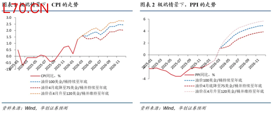 首先,CPI极限情况下难达变盘点。我们做出一组偏强的假设:油价从4月到年底维持120美元/桶的水平;猪价上涨30%左右;在今年核心耐用品补贴较去年减少500亿的背景下,耐用品价格仍保持上涨;金饰品涨幅与去年持平,维持70%的高增速;竞争性服务领域价格水平回到疫情前。在猪油共振、耐用品、金饰品、服务业价格全面上行的极端情景下,今年CPI全年中枢约2%,单月最高读数仅能触及2.5%-3%区间。即,即使在极强的共振假设下,CPI也很难突破3%的关键边界。