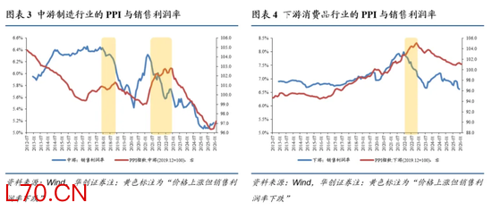 PPI数据上行本是一个客观现象,市场一般认为需求驱动的PPI回升是“好的”,而供给驱动的PPI上行是“坏的”,但客观上,区分PPI上行是供给驱动还是需求驱动是非常困难的,我们退而求其次,我们认为,可重点观察规上工业企业的利润率,以及上中下游各环节的销售毛利率。即,无论PPI走势如何,只要PPI上行能够带动工业企业整体及各环节的毛利率、销售利润率回升,就是“好的通胀”;尤其是在经历了三年物价同比偏低的通缩环境后,PPI上行带来的销售利润率修复,对宏观经济的积极信号更强。反之,若PPI上行伴随工业企业利润率、销售利润率下行,意味着企业增收不增利,这就属于“坏的通胀”。