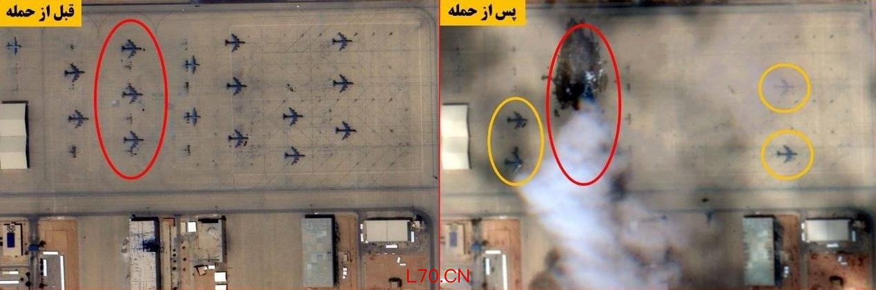 伊朗公布沙特美军基地遭打击前后对比图 多架加油机被毁
